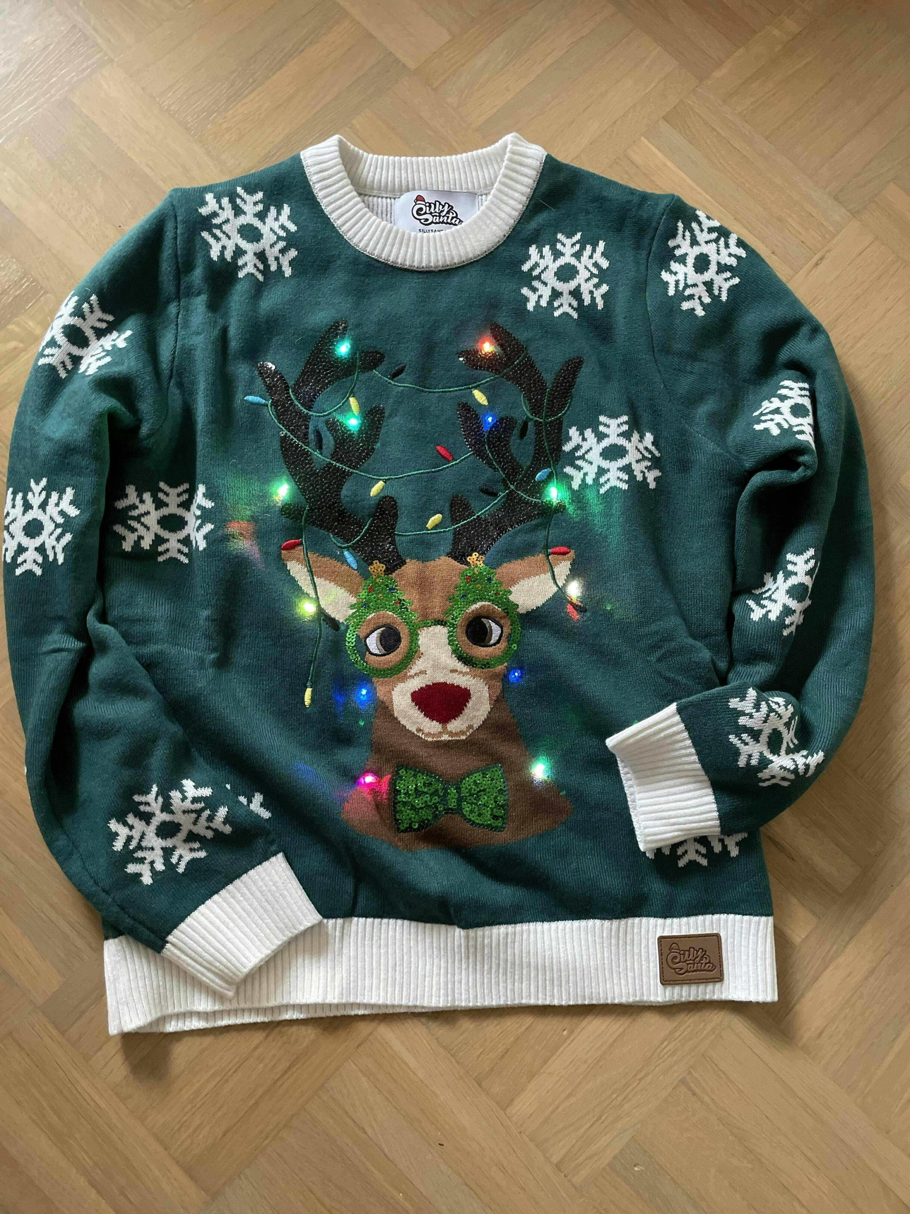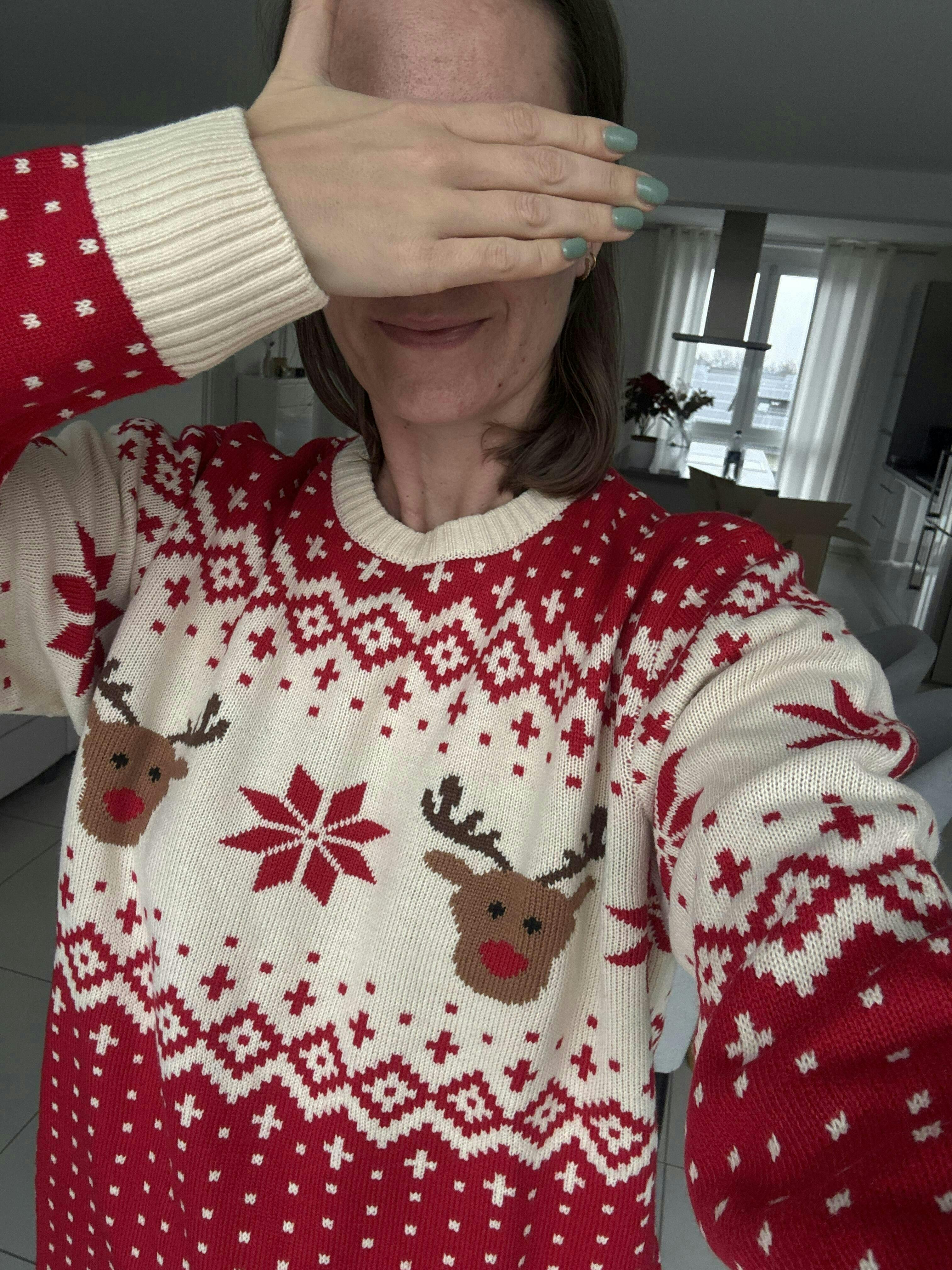 Ik ben positief verrast over deze mooie trui. Het materiaal is 100% acryl, maar het voelt nog steeds heel goed aan op de huid. De maat past ook perfect. Nu kijk ik ernaar uit dat er weer voorraad is in de winkel, want veel dingen zijn al uitverkocht – maar volgende kerst komt er zeker een!