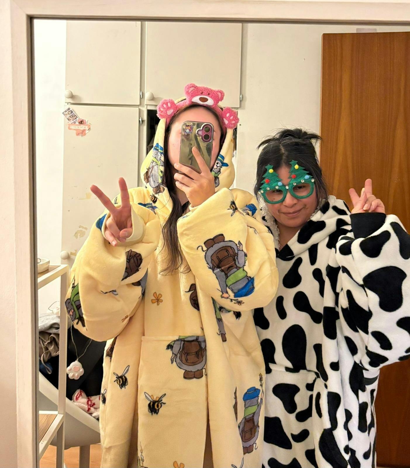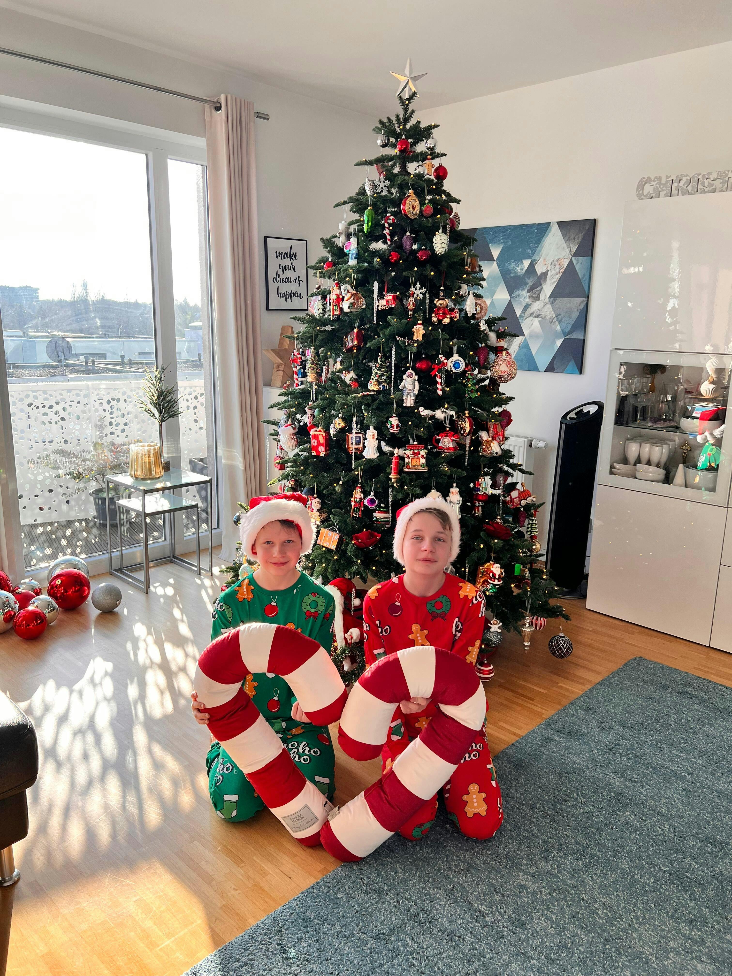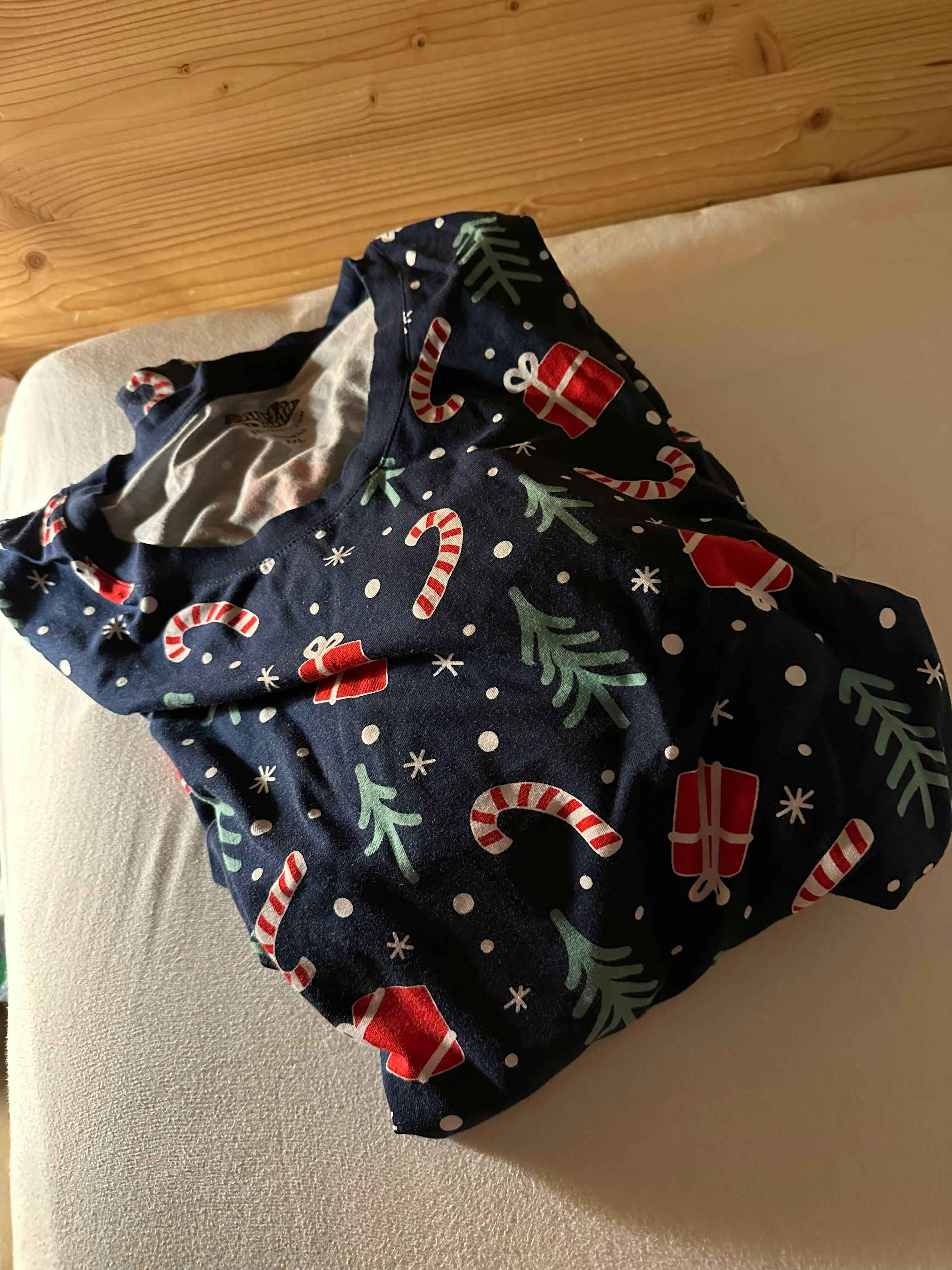 Pyjamat olivat mukavat päällä ja toivat huumoria joulupukeutumiseen.
