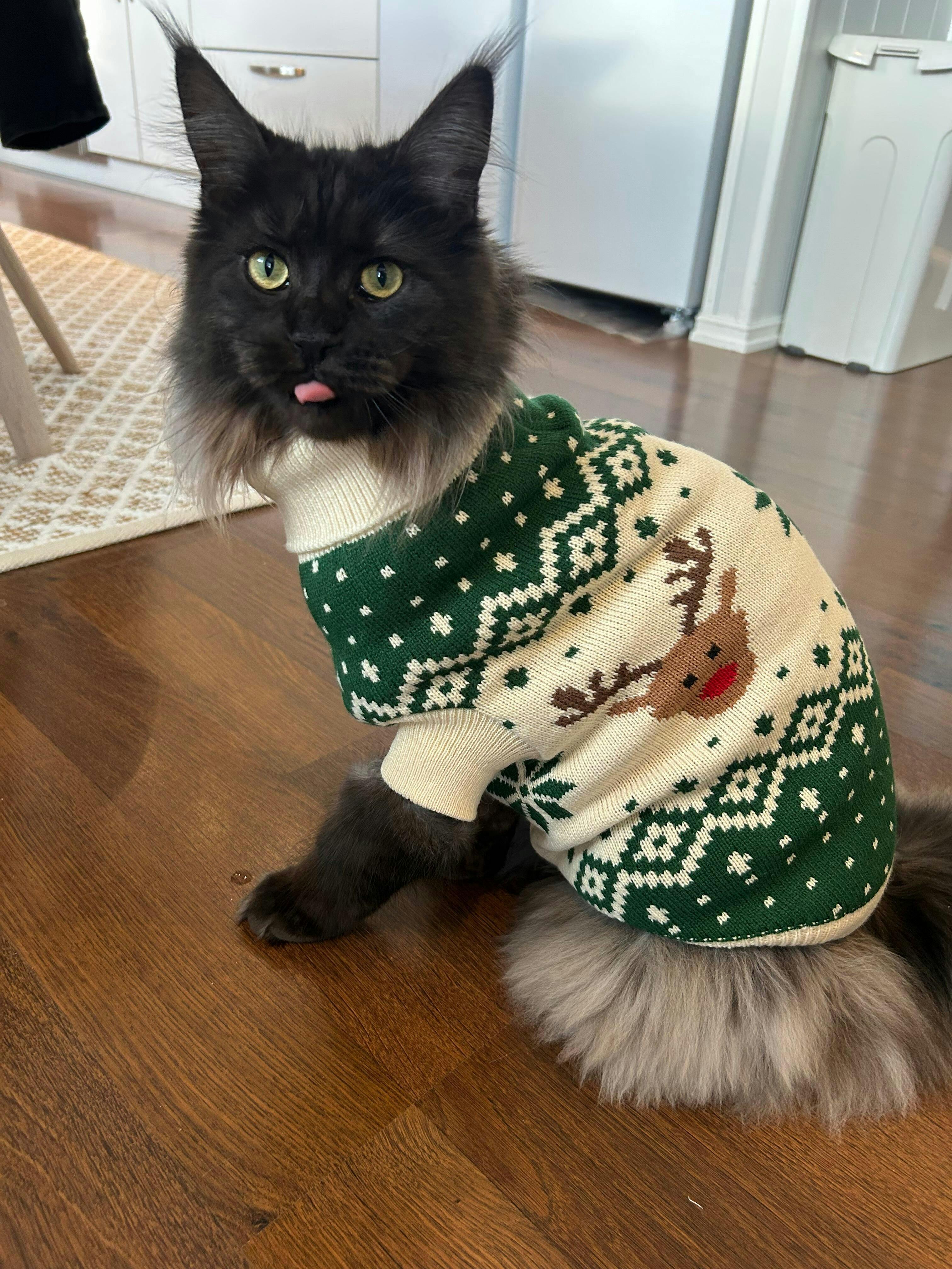 Deze schattige trui is gemaakt van dezelfde hoge kwaliteit als al onze kersttruien en wordt de nieuwe favoriete trui van je katten deze feestdagen.