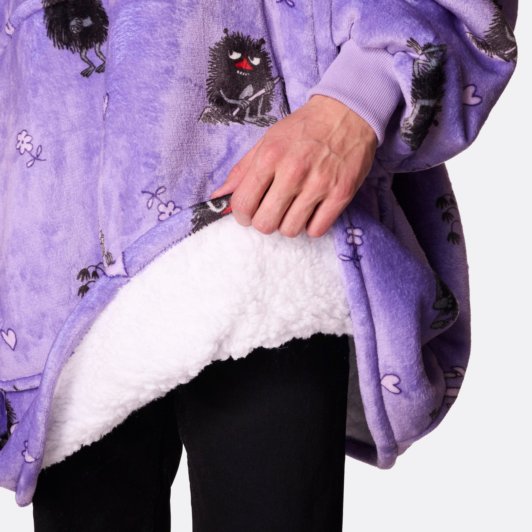 Onze gelicentieerde Moemins HappyHoodie voelt aan als een warme, comfortabele knuffel! De buitenkant is gemaakt van superzacht en knus fleece, terwijl de binnenkant gemaakt is van warm sherpa fleece. Zacht als een schaap, maar 100% veganistisch!